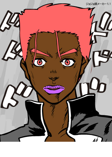 「ジョジョの奇妙な冒険」風のキャラ画像が作成できる。保存機能あり。